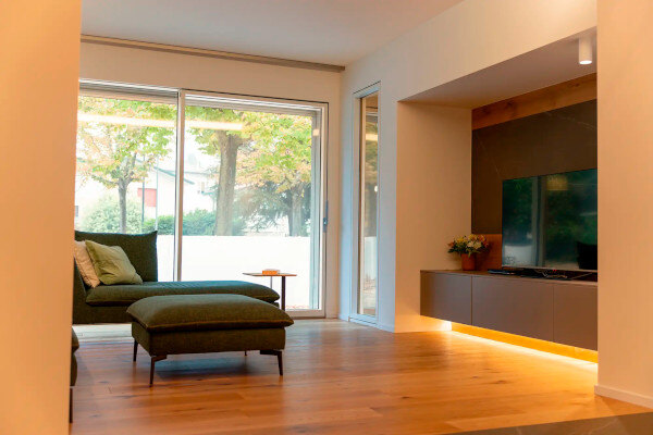 Il “magis40”, in particolare, è una linea di serramenti che da sola arreda gli ambienti, la finitura in rovere naturale poi fa decisamente la differenza.